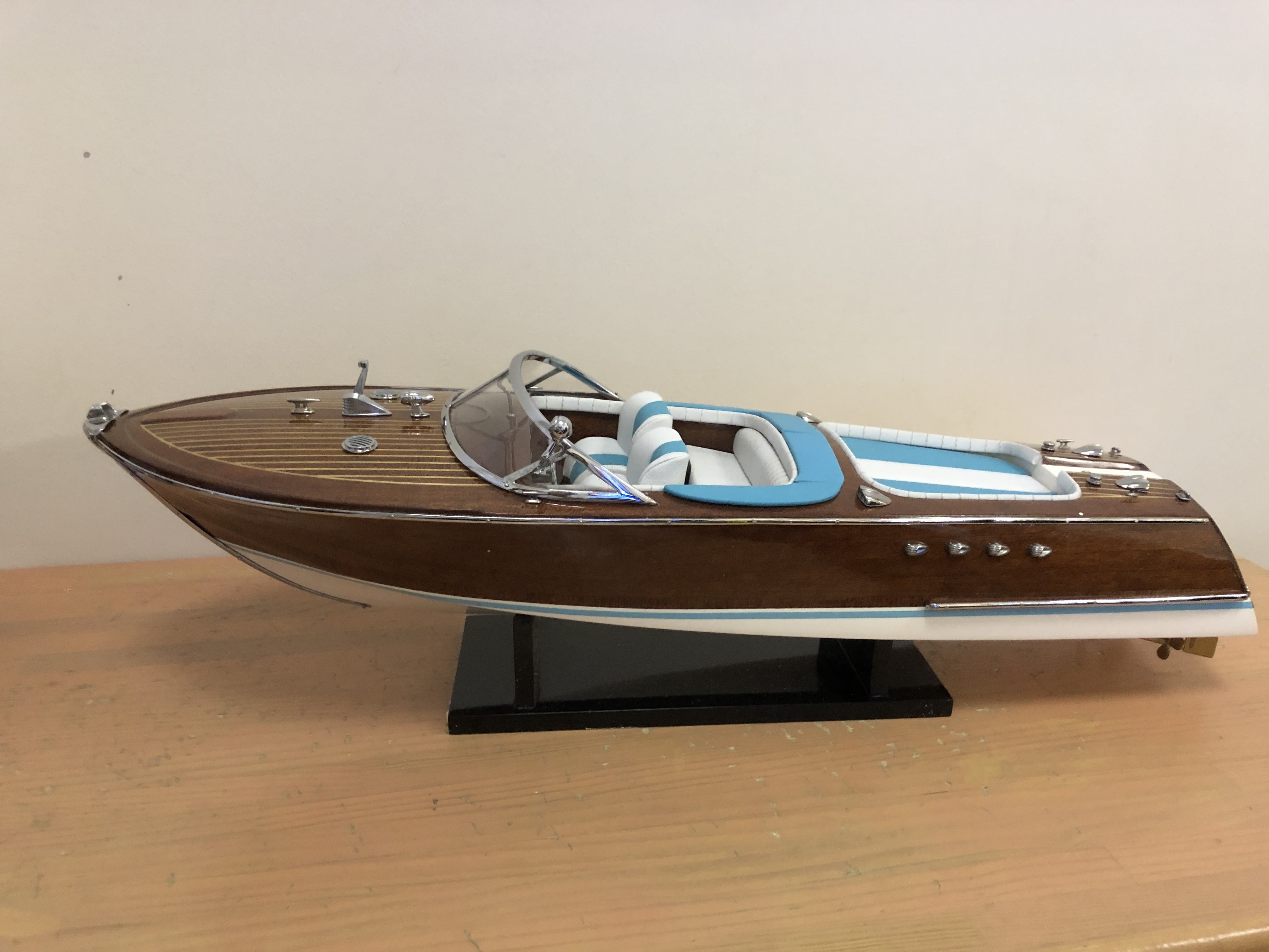 Un bateau en bois verni avec des détails sur le pont… superbe ! La maquette très bien emballée m’a été livrée en un temps record (3 ou 4 jours après la commande). J’apprécie. Faites-vous plaisir, vous ne serez pas déçu.